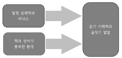 파닉스와 같은 글자-소리 관계의 원리 교육과 책 읽기를 통한 의미 중심의 지도는 사실 병행되어야 한다. ‘낱말 읽기와 철자법’의 발달을 위해서는 글자-소리 관계의 원리를 명시적이고 체계적으로 지도해야 하며, ‘읽기 이해력’ 발달에는 책 읽기가 풍부한 환경이 필요하며, 아동의 언어 능력 발달을 촉진하고 이 언어 능력은 읽기 이해력에 중요하다.
